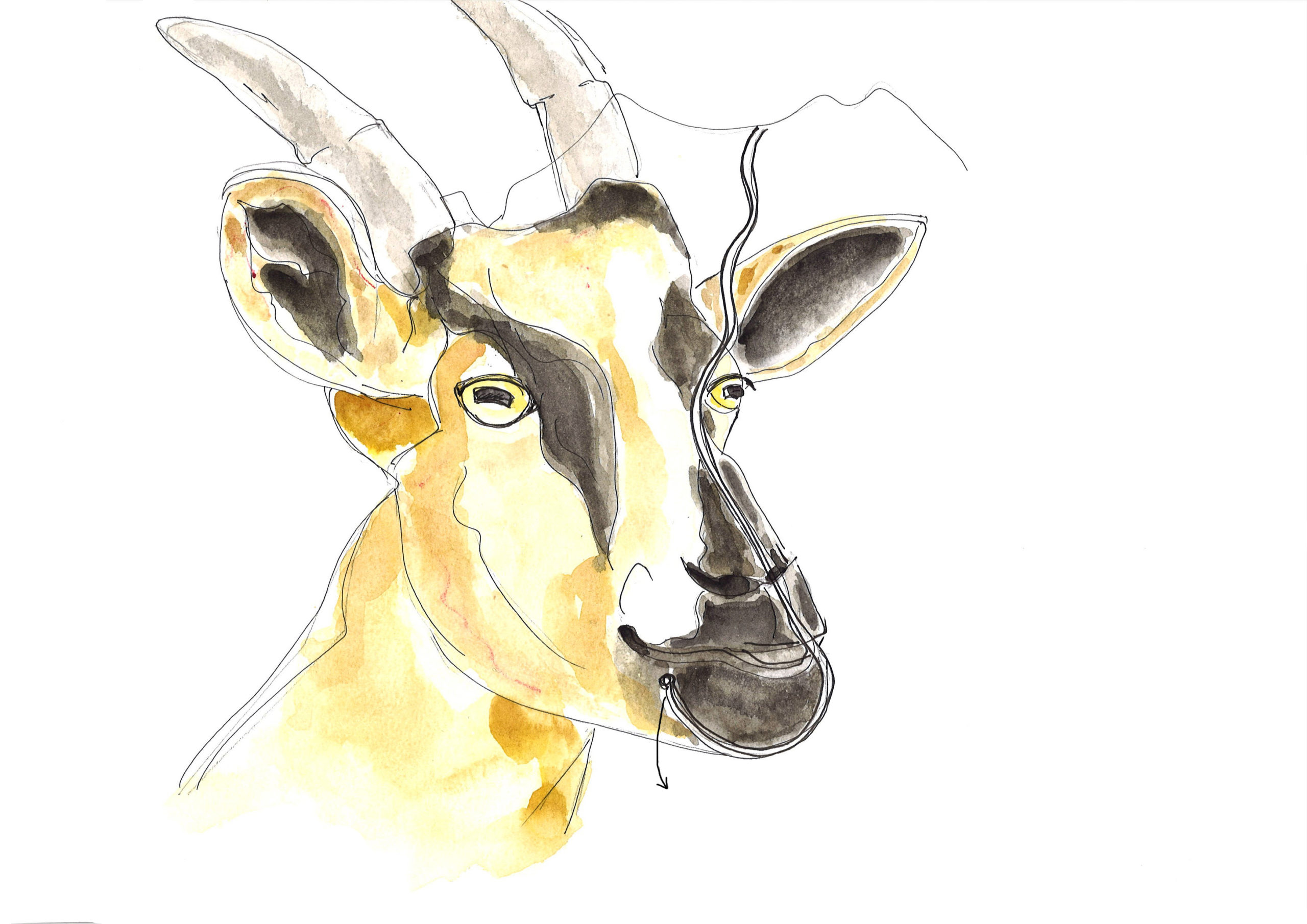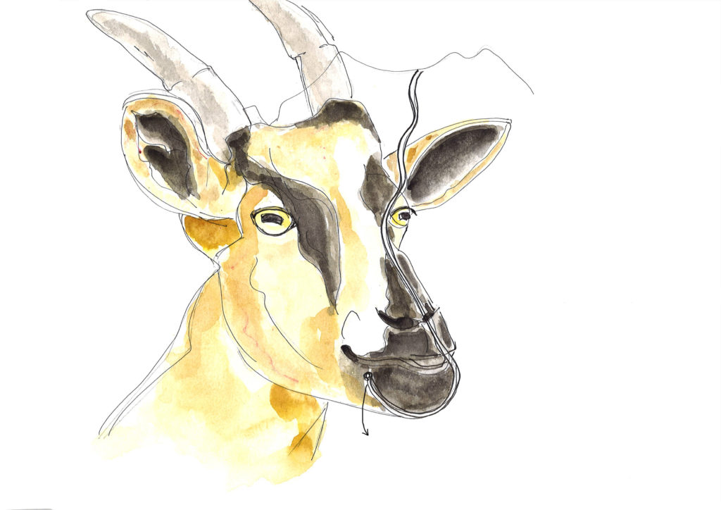 Le chemin des chèvres Aquarelle format 20 * 30 cm , avec passepartout , cadre sous verre format 30 x 40 cm