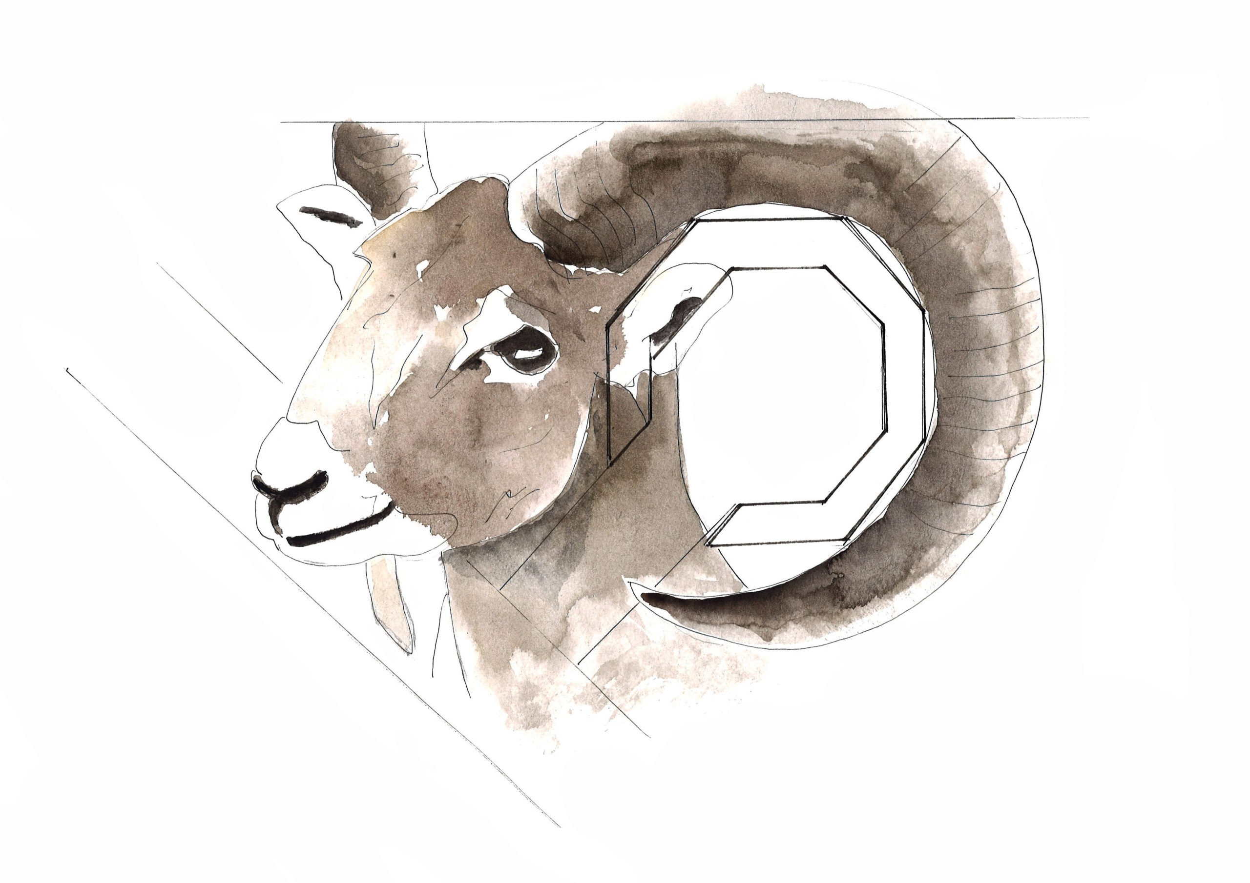 Le farouche mouflon du Sancy Aquarelle format 20 * 30 cm , avec passepartout , cadre sous verre format 30 x 40 cm