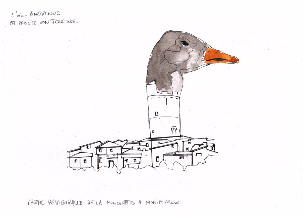 L’oie de Montpeyroux (63) protège son territoire 😉 Aquarelle format 20 * 30 cm